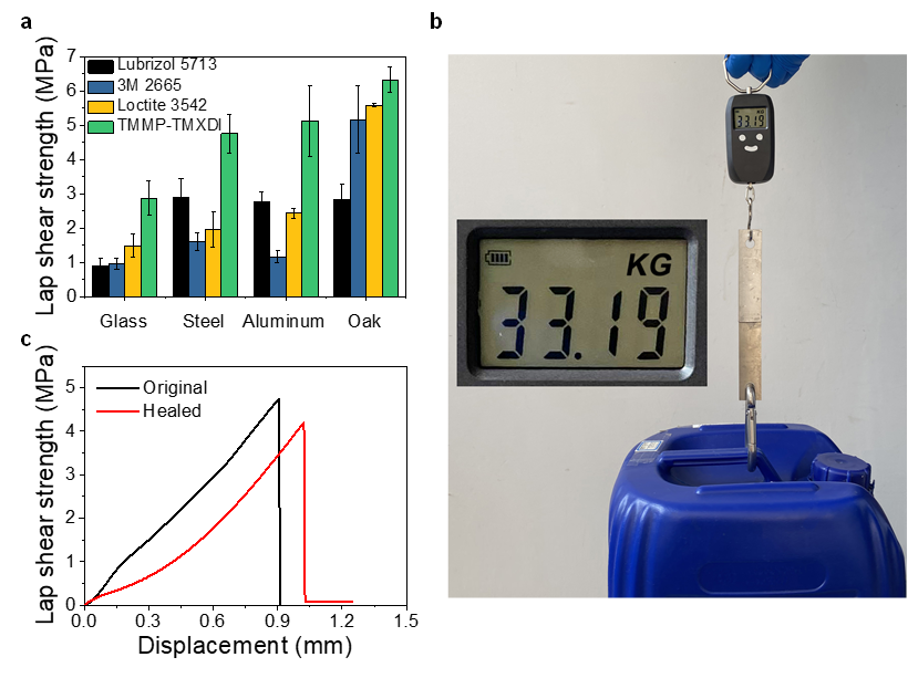 图4. 聚硫氨酯共价适应网络的粘接性能和再加工能力