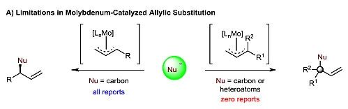 理学院Ajmal Khan团队提出了探索可提供含有杂原子的三元烯丙基立体中心产物的新型钼催化烯丙基取代反应(图1右),且首次报道了钼催化的叔烯丙基亲电试剂的烯丙基磺酰化反应。该团队在未知的情况下进行了大量探索,最终得到预期结果的最佳反应方法(图2)。