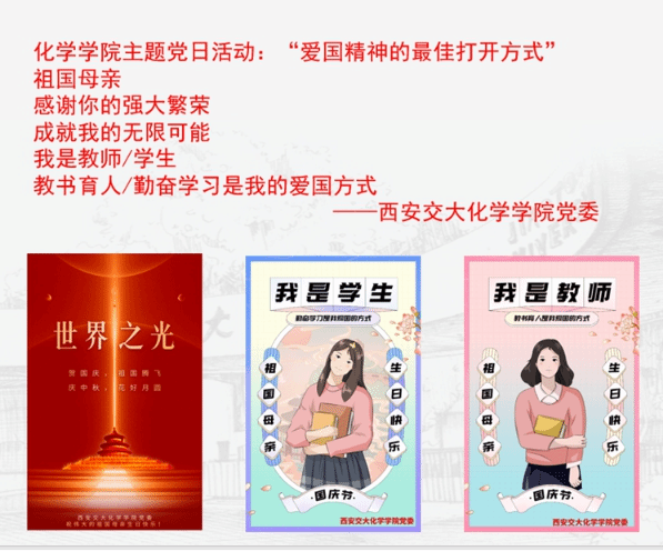 在融汇提升校园文化建设方面,学院党委始终致力于打造具有学院特色的“化学文化”,通过建设积淀形成化学人达成共识的价值体系,创新校园文化载体,打造化学品牌文化,培育体现历史内涵、彰显化学特色的校园文化,进一步提升了学科的内涵发展,持续优化了育人环境,持续助力人才培养质量的提升。学院动员师生全员参与、集思广益设计了p站视频