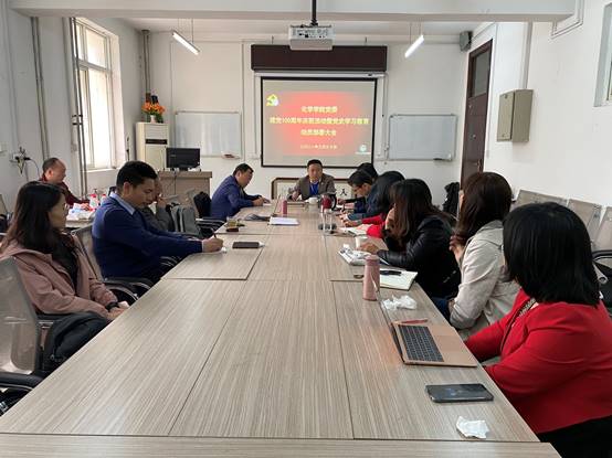 张志成书记深入解读了学院党委党史学习教育工作的实施方案、建党100周年庆祝活动方案以及中心组学习计划等内容。他强调了以下四个内容:一是开展建党100周年活动和党史学习教育正当其时,十分必要,意义重大。要求学院党员同志要做到学史明理、学史增信、学史崇德、学史力行,学党史、悟思想、办实事、开新局,以昂扬姿态奋力开启全面建设一流化学学科新征程,以优异成绩迎接建党一百周年。学习和深刻领会党史,才能了解中国共产党的前世今生,我们才能够做到不忘初心,牢记使命,才能为中华民族的伟大复兴而多做贡献。二是党史学习教育方案中的主要概念进行了说明,包括主要目的、总体要求、常规活动创新点、特色活动等。三是立足自身结合学院中心工作提出了具体的做法,包括组织好系列专题学习、开展好系列实践活动、做好系列宣传工作。四是具体要求,主要是责任的落实、工作的统筹、分类指导等内容。