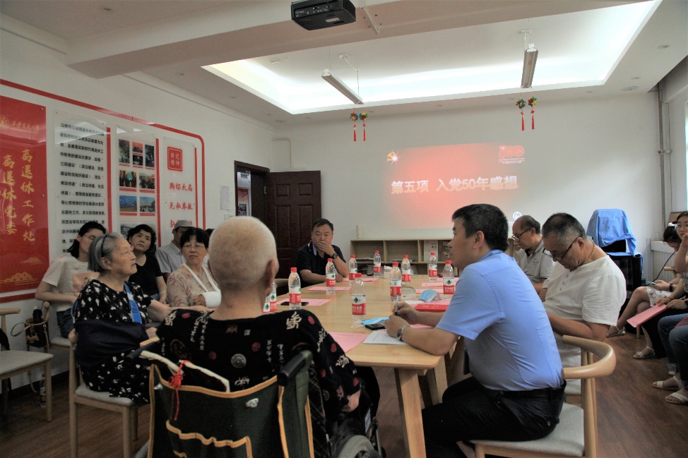 杨棣,出生于1921年, 1945年毕业于浙江大学,1948年在唐山市政府参加革命工作,1951年加入中国共产党,1956年调西安动力学院任教,后并入交通大学西安部分,历任讲师,副教授等职。老教授的传奇故事给在座的全体党员上了一堂精彩的党课。由于时局的关系,解放初期他被安排到河北唐山工作,为了祖国需要自主研发炸药,在研制炸药的过程中,发生了意外,被炸去右臂,左手只留下两根指头,右眼也失明了,经过多名同志输血才保住了性命。他虽已百岁高龄,但是讲话仍然清晰铿锵有力,他回忆到,“我的手是1950年被炸掉的,当时在解放区参加革命,我这条命是共产党给的,我不能因为个人得失斤斤计较,要继续全心全意投入革命工作。”虽然老人讲起这段经历轻描淡写,却令大家既震惊又感动,遭受了如此巨大的人生变故后依旧乐观积极的面对生活,仍然满心想着为国家做贡献,他人对共产党的热爱、对祖国的热爱是留在血液里的,这种胸怀与气度令人钦佩。