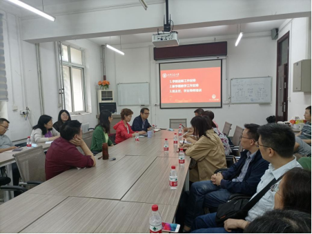 各位老师进行了详细交流。张雯老师汇报了新学期大面积教学课程安排情况并详细列举了教学中的各项注意事项;白艳红老师汇报了中一楼实验室整体改造情况并认真强调实验安全问题。