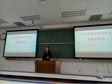 本科生提升专业兴趣,明确自身发展定位,科学规划自己的大学生活,10月13日下午,学院特邀请察爽爽与严杰两位优秀本科生分享自身的成长经历并传授相关经验。两位同学从学习、竞赛、以及时间规划等方面“倾囊相授”,为学弟学妹们带来一场“干货满满”的分享会。应用化学系主任李银环老师与学院部分班主任、学业导师纷纷来到现场与同学们亲切互动、深入交流。本次交流会由郭丽娜老师主持。