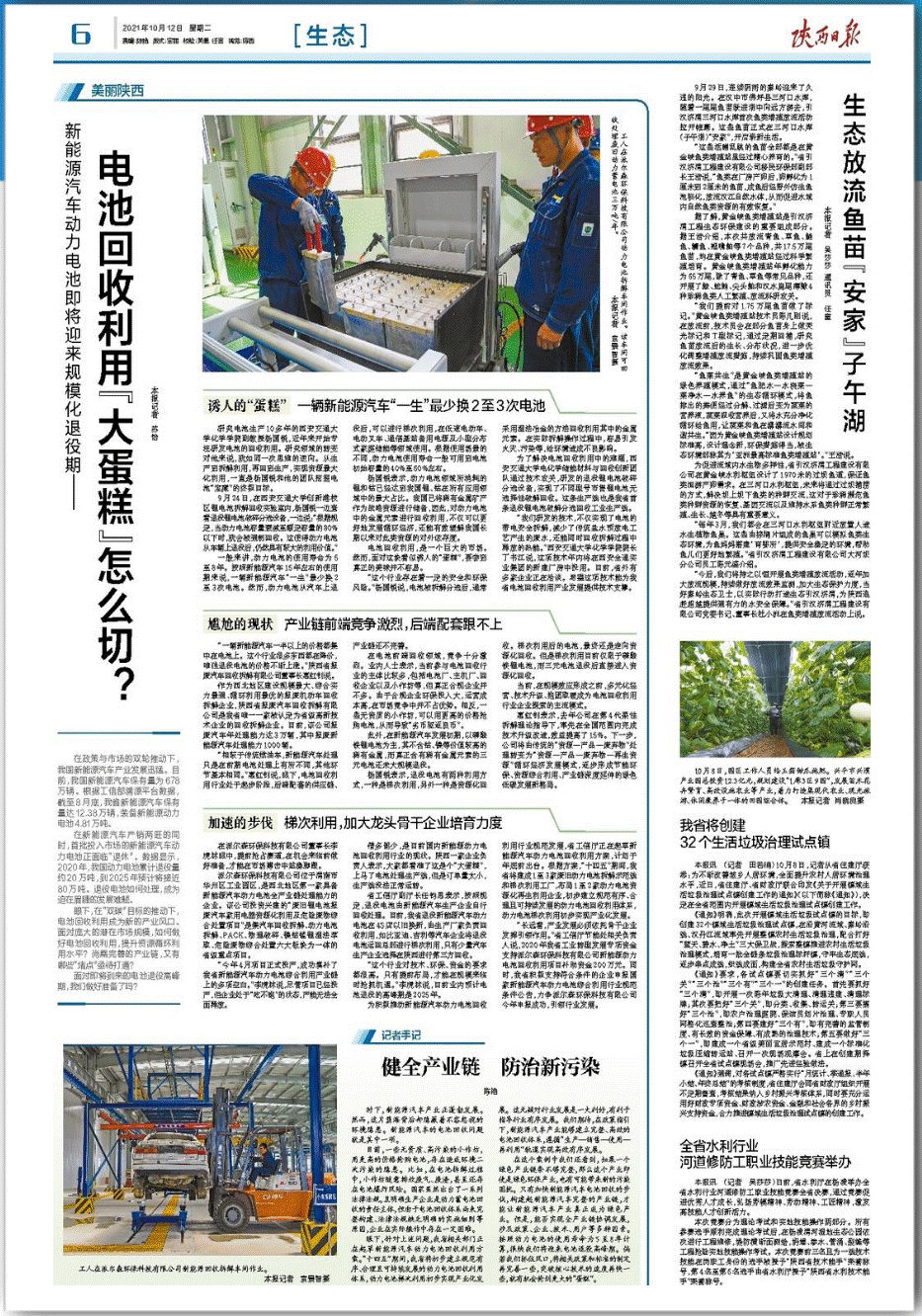 院长丁书江说,这项技术年内将在西安全通实业集团的新建厂房中投用。目前,省外有多家企业正在洽谈。希望这项技术能为我省电池回收利用产业发展提供技术支撑。”