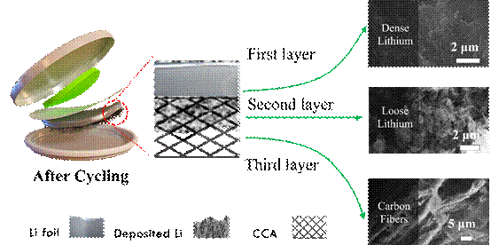丁书江教授课题组提出了一种疏导锂枝晶生长的策略,使发生锂枝晶生长的主要界面从负极/隔膜界面转移到集流体侧界面,从而保护了电池隔膜,延长了电池循环寿命。最终,该锂金属复合电极结构在磷酸铁锂/锂金属全电池应用中表现出优异的循环稳定性(1000次循环后,容量保持率高达94%)。该工作为探索锂金属负极的实际应用提供了一种简单有效的新策略。