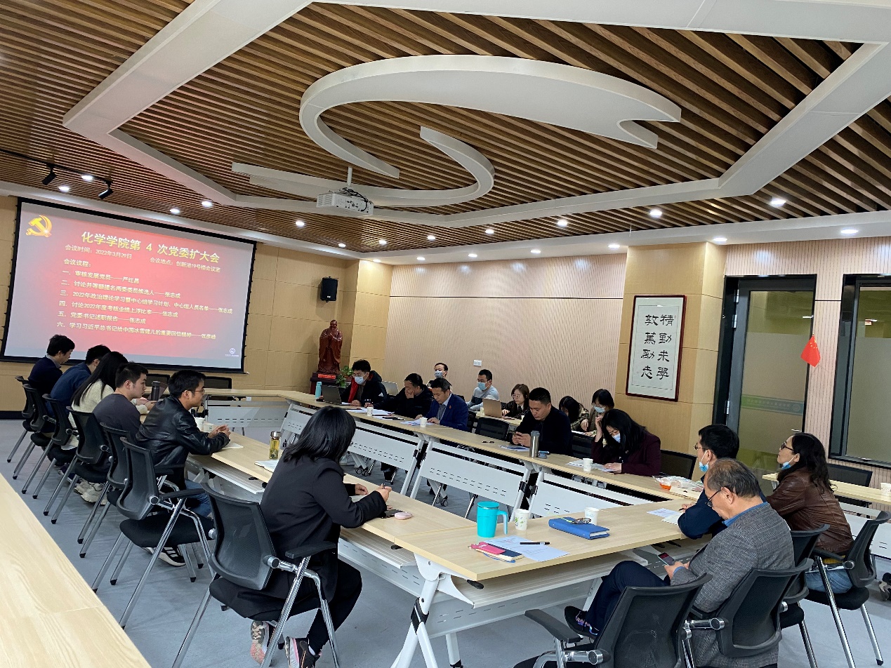 张志成同志给会议做了题为“党建引领发展、事业凝心聚力”的党委书记2021年述职。报告分别讲述了2021年化学学院工作中出现的问题和不足,最后针对上述问题和不足给出一系列解决方案以及对2022年的党建发展计划做出了汇报。