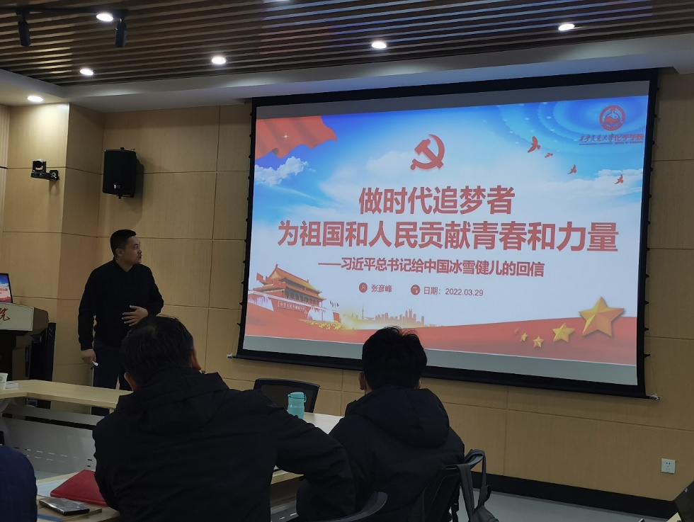 化学实验教学中心党支部学习习近平总书记给冰雪健儿的回信,习近平总书记鼓励健儿做新时代的追梦者,通过拼搏实现人生价值和理想,为祖国和人民贡献青春和力量。回信振奋人心,催人奋进,中心党员老师纷纷表示,要从本职工作做起,在今后的工作中,学习冰雪健儿奋勇拼搏超越自我的精神,不断提高专业素养和教学水平,为建设国家级实验教学中心做出积极努力。