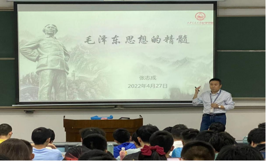 授课中,张志成介绍毛泽东思想的形成历程,同时点明实事求是、群众路线、独立自主是毛泽东思想活的灵魂。张志成从这三个方面,以史为鉴,以实为基,用通俗易懂的言语配合生动形象的事例,一步步引导同学们深入领悟毛泽东思想的精髓。