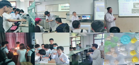 张彦峰教授通过普及形状记忆高分子和自愈合高分子的概念,讲述形状记忆高分子材料在血管支架、机器人、太阳能电池铰链、军事中的应用;张祯副教授通过举例手机、智能镜片等向大家介绍光致变色和电致变色技术,包括一些偶氮、四苯基乙烯席夫碱、苯并噻吩、螺吡喃、罗丹明等刺激响应材料,让同学们感受到化学改变世界的神奇;高国新副教授通过生活中的案例,包括光纤、仪器仪表、蛟龙号、飞机挡风玻璃等,引入甲基丙烯酸甲酯制备有机玻璃的反应原理,向同学们讲述“身边的‘明星’——有机玻璃”;梁军艳副教授通过一些问题“如何使水滴,油滴在固体表面经过而不留下任何痕迹?如何实现油水混合物的分离?如何实现油污的自清洁?”引导学生了解材料表界面化学与结构的原理,表面疏水、亲水、疏油、亲油等特殊浸润性材料的设计与制备及其在防水、防污和油水分离等方向的应用,向同学们展示“水和油的界面游戏”;杨晓龙副教授介绍OLED有机发光二极管及其发光材料在手机、电脑屏、照明等方面的应用,讲述OLED的结构,解密“梦幻显示的秘密”;朱敏老师带领同学们自制美丽香皂,通过将皂基溶解加热、上色、发泡、制模、冷却、脱模等过程体验香皂制作过程;胥艳子助理教授从生活中的人民币、水母、书签等出发介绍荧光现象,通过现场收集学生指纹,展示指纹成像,让同学们体验AIE材料的应用前景。