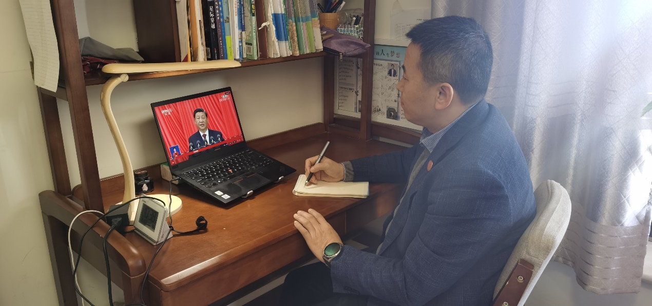 王栋东老师表示,自党的十八大以来,我国各项事业发展取得举世瞩目的成就,中华民族实现了从站起来、富起来到强起来的伟大飞跃,中华民族伟大复兴进入不可逆转的历史进程。过去十年,伟大成就铸就了激荡人心的东方传奇,赢得了令人惊叹的大国荣光。日月开新元,万象启新篇,举世瞩目的中国共产党第二十次全国代表大会将会是中华民族踏上强起来之路的重要里程碑会议。全国各族人民翘首以盼、期待着二十大党中央勾画出未来五年十年甚至更长一段时期的宏伟发展蓝图。今天上午,我怀着激动的心情观看了中国共产党第二十次全国代表大会开幕会,认真聆听了习近平总书记的宏伟壮阔的报告,感想很多。