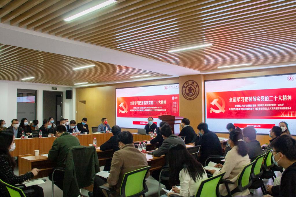 、航天学院、国资处负责同志,师生党员代表参加学习,积极交流学习体会。与会同志一致表示,要坚持全面学习、全面把握、全面落实,进一步把思想和行动统一到党的二十大精神上来,坚持立德树人根本任务,提高理论水平,立足本职岗位,提升工作能力,狠抓落实成效,为实现中华民族伟大复兴作出新的更大贡献。