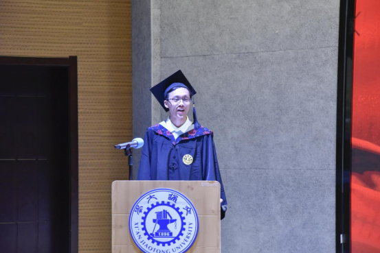 来自应化91班的刘迪炯作为本科毕业生代表发言。他总结了四年的成长道路,深切表达对学院和老师的感激之情:“求学路上我们经历过许多与交大化院的专属时刻。我们见证了p站视频 的成立、搬迁、壮大,目睹了创新港19号楼实验室的不断充实与发展,进入应用化学专业学习的三年时光里,p站视频 也在与我们一同成长。我们也期待在未来继续看到学院不断突破自我,奋勇前行。”