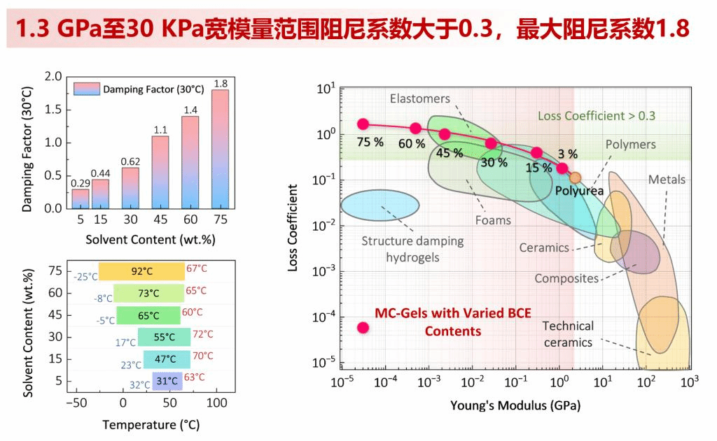 图3.大范围内材料模量的连续调控与高阻尼特性