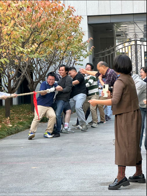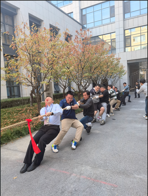 工会组织的教职工体育系列活动---11月拔河比赛,在创新港19号楼中心花园开赛。本次比赛以“友谊第一,比赛第二”为原则,由2、3楼和1、4、5楼部分教师分别组成两支队伍,每队10人进行对决,比赛采用五局三胜制。