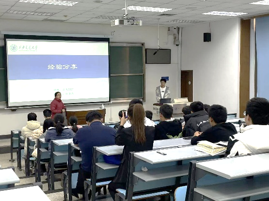 下午五点,在化学2301班班主任胡敏老师主持下,应化专业二年级本科生孙继远同学向学弟学妹们分享学习心得。在本次分享中,针对同学们普遍反映的高等数学、线性代数等课程进度快、课堂学习效果有限等困难,孙继远同学分别从学习习惯、学习方法、复习备考策略以及自习场地选择等多个方面向大家分享了自己的经验,提出了数条切实可行的建议和参考。参加分享会的同学们和孙同学进行了热烈交流,大一年级的班主任老师们也结合自身的教学经验给同学们提出了关于复习进度安排、答疑和实践学习等方面的建议。