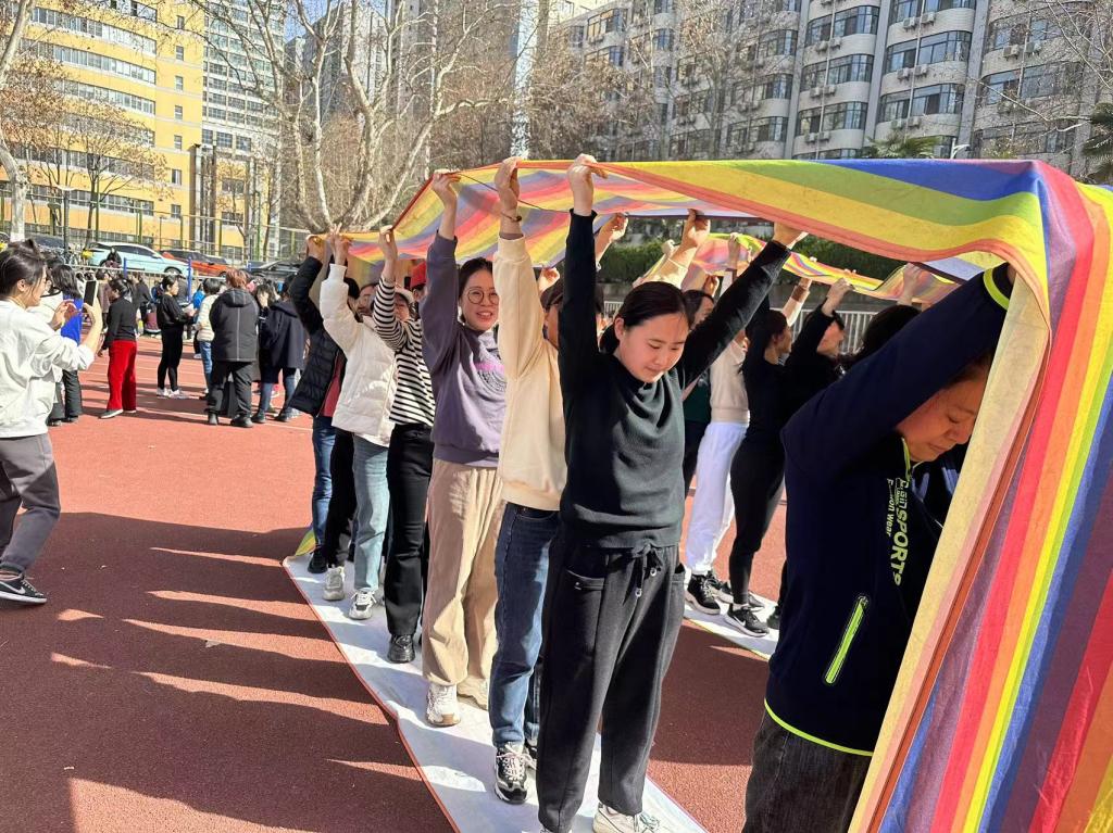 女教工们精神抖擞地走进场地。运动会以热情洋溢的开场舞拉开序幕,歌声和笑声交织在一起,为整个活动注入了无限的活力与欢乐。