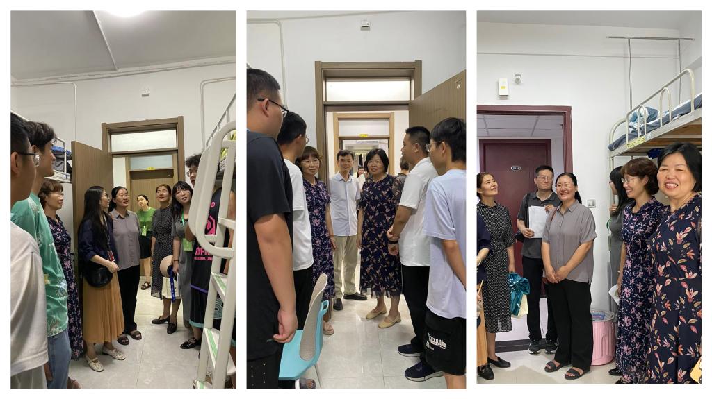 副院长李银环、励志书院院务主任徐慧、应用化学与化学系主任、副主任及新生班主任一行深入学生宿舍进行走访慰问,深入了解同学们的学习和生活情况,并察看了新生宿舍的卫生状况、内部设施和安全问题等。
