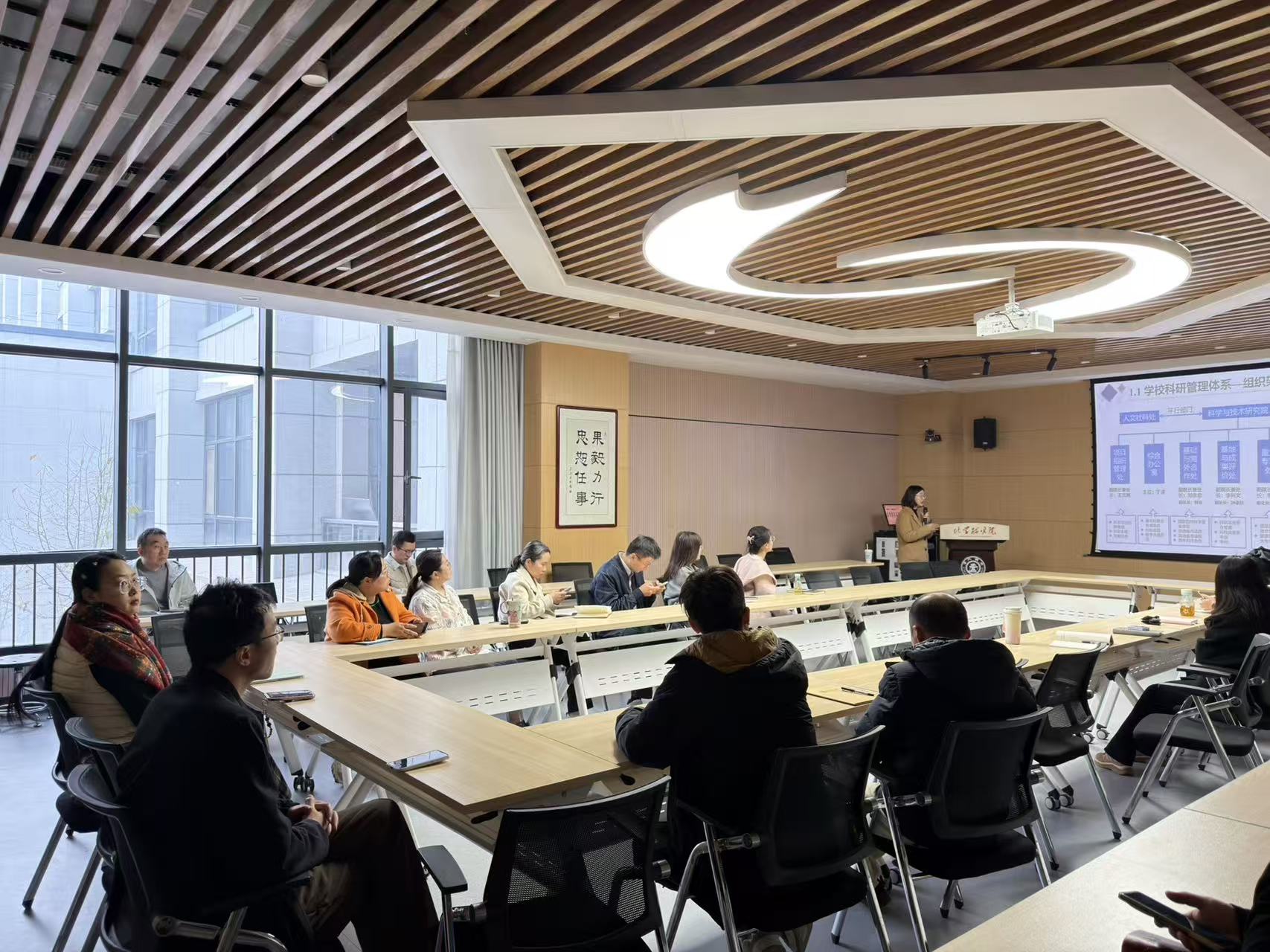 会议伊始,武莹老师围绕学校科研管理体系的组织架构和人员分工展开详细介绍。她清晰展示了校级科研管理部门的层级分工,重点解读了科研项目申报、过程管理、结题验收等环节的职责划分与协同机制。同时系统梳理了国家级、省部级及校级科研项目的申报要点。她以国家自然科学基金、国家重点研发计划等项目为例,从申报时间、团队组建、预算编制到申报书撰写技巧,提供了全流程指导,强调“提前布局、系统培育”的重要性。