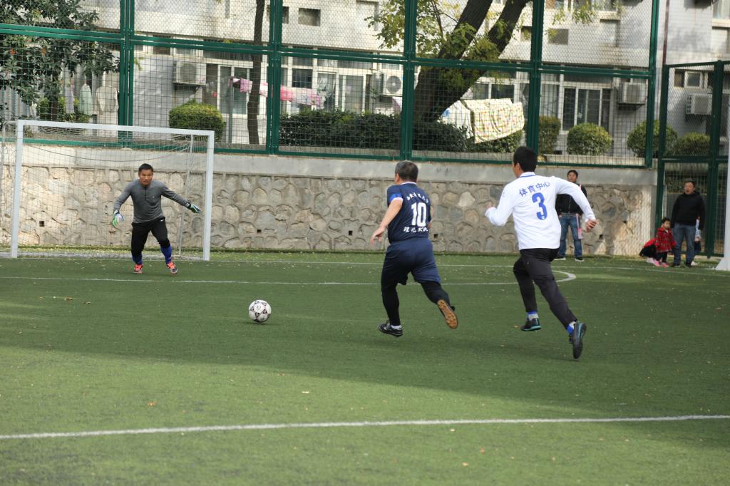 在11月1日上午10点进行的四分之一决赛中,理化联队奋勇拼搏,咬牙坚持,最终因实力差距明显,2:6败于本届冠军队体育中心,连续三年负于赛事最终冠军,止步本届教职工五人制足球赛八强。理化联队连续三年闯入该项赛事八强,成为学院中唯一一支做到的队伍。肖春辉老师5场比赛打进12球,排名射手榜次席,荣膺队内最佳射手。