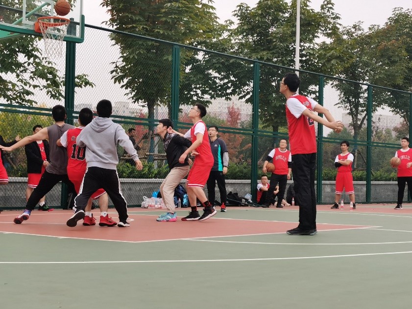 比赛以5V5篮球赛的形式展开,比赛全程分为上半场和下半场。参赛人员共计22名,其中参赛教师11名,分别是:肖春辉、洪涛、饶彬、胡明友、李静、梁仲帅、郭寅周、谭少博、丁书江、张彦峰、漆贺同等;参赛学生11名,分别是:苏宏哲、龚航、李宸辉、李卓、彭圣钧、王世新、王逸涵、王钰、王石、刘理民、王开腾等。赛前参赛队员们进行了充分的热身,比赛在裁判嘹亮的哨声中正式开始。高高抛起的篮球激起了大家的热情,比赛一开始参赛双方就迅速投入比赛,尽展赛场英姿。