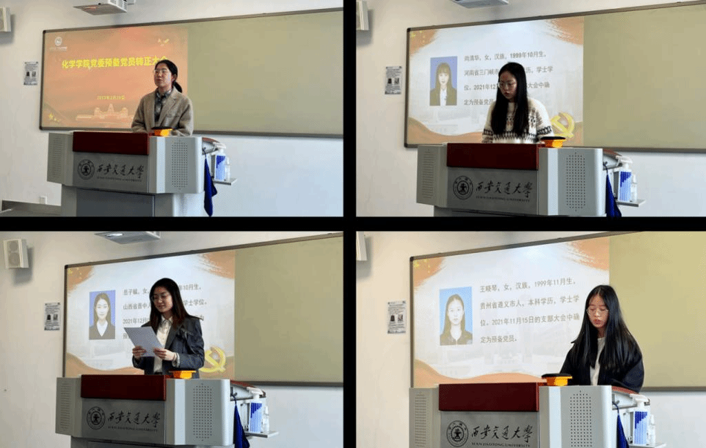 随后,按照转正程序,由副书记易翠同志清点到会党员同志人数,宣布会议开始及会议议题,全体党员同志起立奏唱国歌并重温入党誓词。三位预备党员宣读转正申请书,汇报本人在预备期间的表现,肯定进步与成绩,发现缺点和不足,郑重地向党组织提出申请,表明向党组织靠拢坚定的态度和决心。接着三位同志的入党介绍人就预备党员在预备期间的表现情况进行汇报,说明同意申请人按时转为中共正式党员。