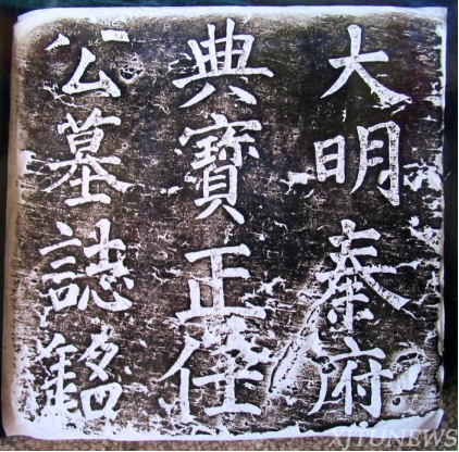 这次共出土墓志铭并盖7副14方。其每块墓石相扣合,以铁圈相捆,置于墓室之外土中,墓石边长约60厘米不等,其盖上书“大明秦府某公之墓”字样,志石上书某公姓名、乡里、生卒年月及葬地。秦府典宝张义的铭文中这样记道:“葬于城南内官之茔”,在典宝正任伦的铭文中也有记述:“葬于古迹岭从内相茔也”。史书上说,明代有内官监,以太监充当。内官就是宦官,显而易见,这里埋葬的全是为秦王服务终生的宦官们。再从七位墓主人的姓氏、籍贯分析,他们既不同宗,也不同祖,又不同乡,但却葬于同一茔地,这就是历代宦官命运——死后不能归宗自家祖茔地。