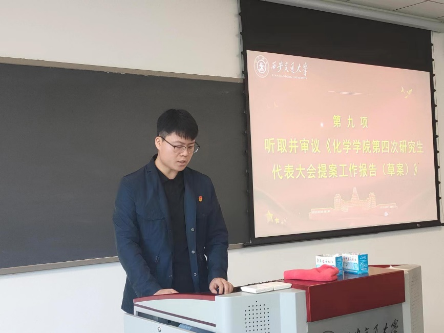 第四次研究生代表大会提案工作报告(草案)》,提案涵盖了教育教学、文化建设、校园生活、科研就业等方面内容,与会代表们认真听取并通过了本次提案。