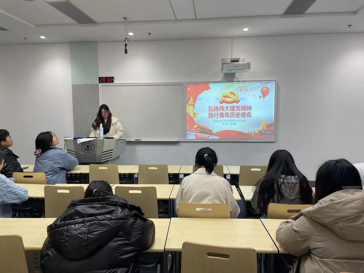 2023级硕士新生共35人参加会议。此次会议由肖纪元书记主持召开,并由第三小组进行名为《弘扬伟大建党精神 践行青年历史使命》的主题学习汇报。第三小组成员共有七位同志:李仁杰、王语霜、雷小彤、曹泽杰、高源、高维娜、魏逍月。本次汇报由高维娜同志进行。