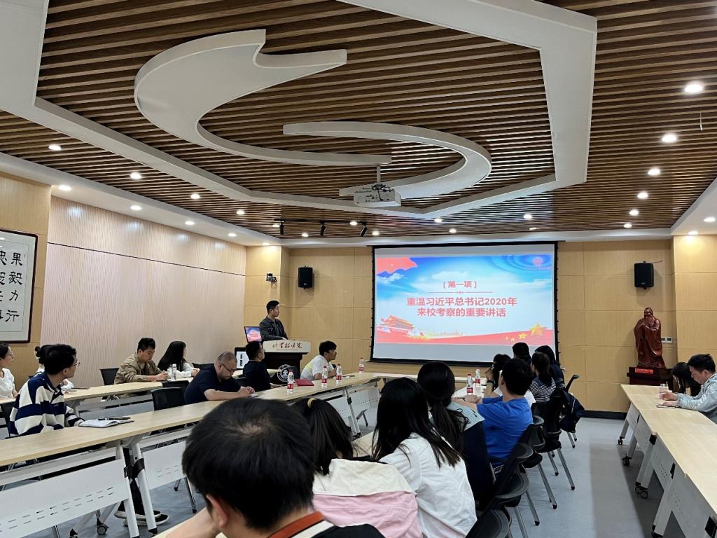 会议第二项,党支部副书记申锴翔带领党员同志重温习近平总书记2020年来校考察的重要讲话。党员同志要做到坚持学思想,坚持强党性,坚持重实践,坚持建新功,要坚持学懂弄通做实习近平新时代中国特色社会主义思想,传承弘扬西迁精神,切实把理论武装转化为生动实践。