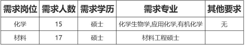 需求专业:材料/高分子材料/化学/相关专业等